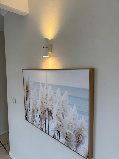 Sub-board Upgrade - New Clipsal sub-board installed - Dedicated circuits for A/Cs, lights, stove, and hot water - Fully labelled and compliant Air Conditioning (x4) - Four split systems installed throughout the unit - Reverse cycle (cooling and heating) - Each system on a separate circuit - Neat external unit positioning for airflow and access Lighting - Pendant lighting in key areas - Decorative wall sconces for ambience - LED fittings to keep energy use low - Smoke alarm hardwired in Power & Cabling - Multiple new double powerpoints throughout - Switches upgraded to Clipsal - All cabling concealed - Tested and certified to AS/NZS standards