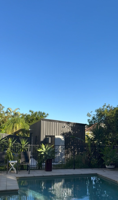 The dream backyard upgrade. Sleek, secure, and ready for work or play—with poolside vibes to match.