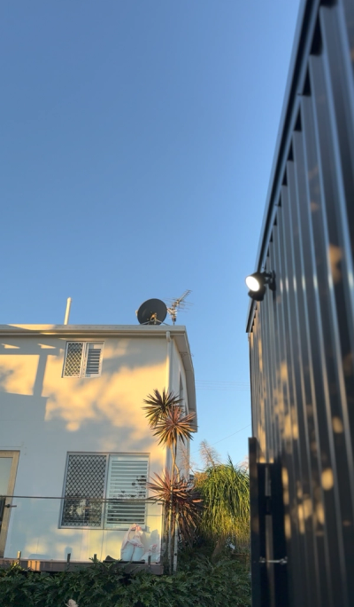 The client needed to get reliable power from the house down to the shed to run machines, tools, and lighting. They also wanted to future-proof the setup with capacity for a fan and potential air conditioning. Lighting was limited, especially at the front and side of the shed, which impacted usability after dark.