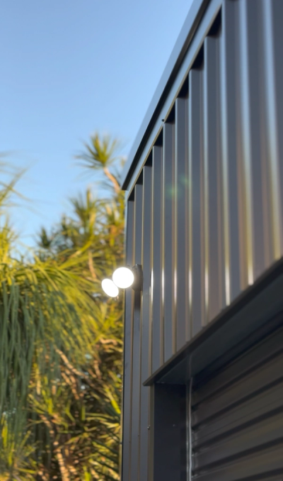Dual LED spotlights installed over the roller door for added security and all-hours access—whether it's late-night projects or early-morning missions.