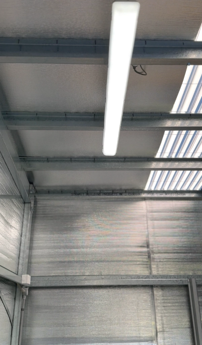 Bright and efficient LED batten lighting installed by Atlas Power Solutions to illuminate the entire shed interior